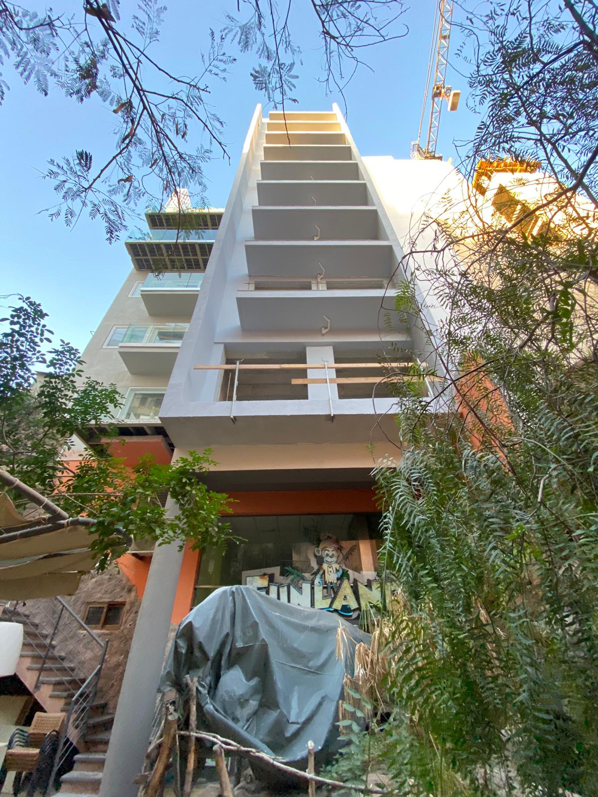 Construction of a 60-room hotel. The building is constructed partly over third parties and consequently heavy consolidation works were undertaken to the existing structure prior any construction works were undertaken.