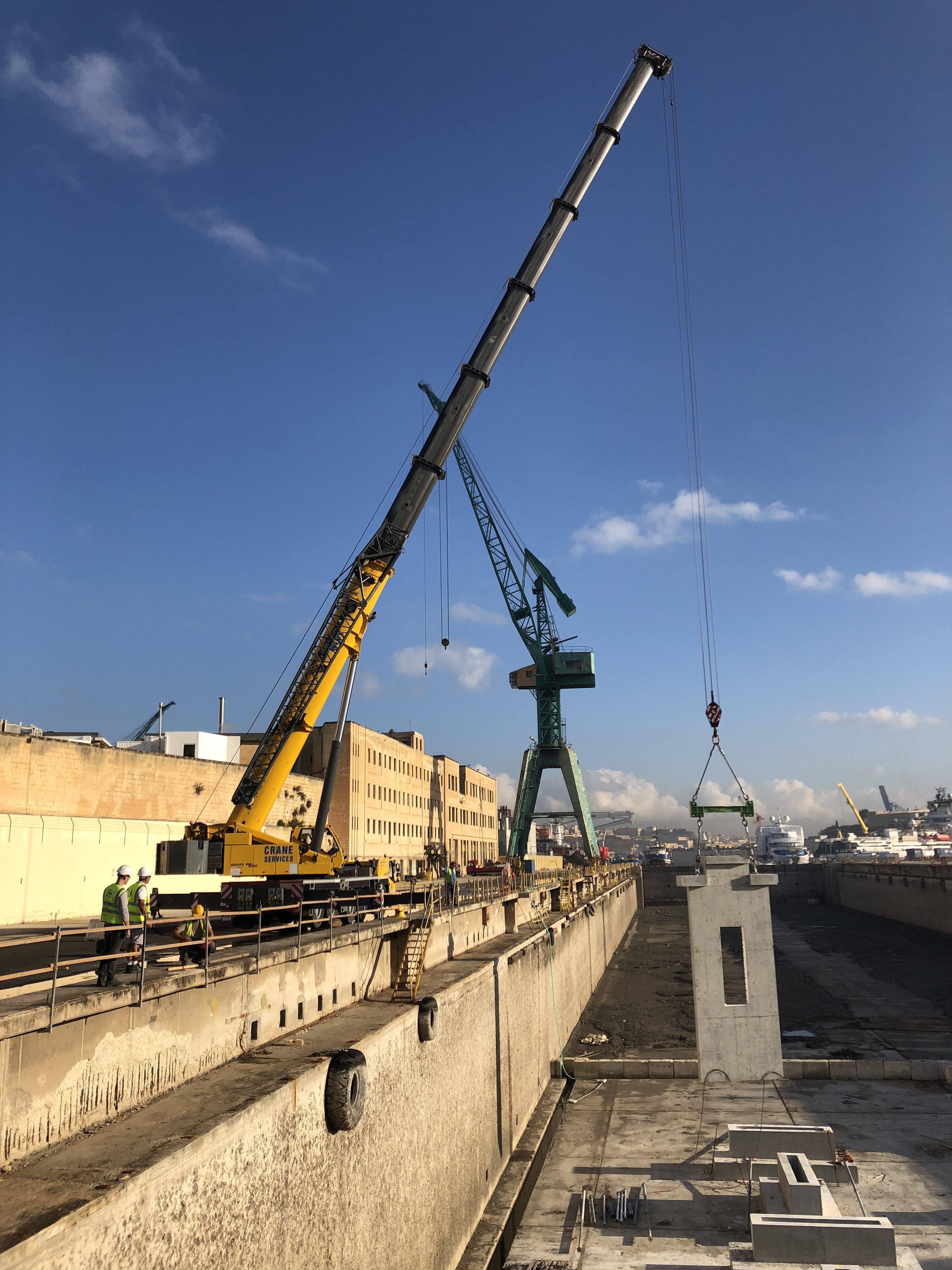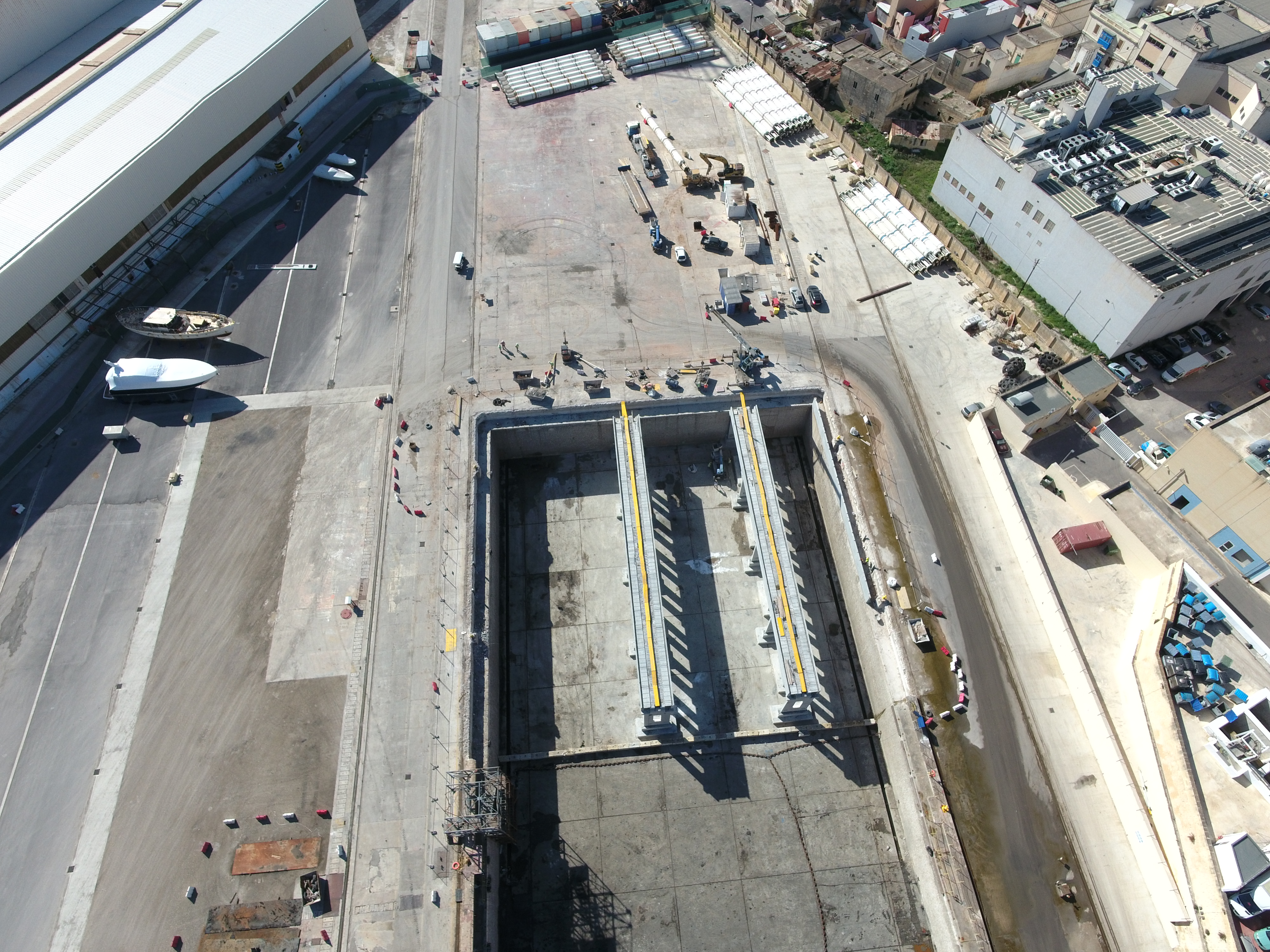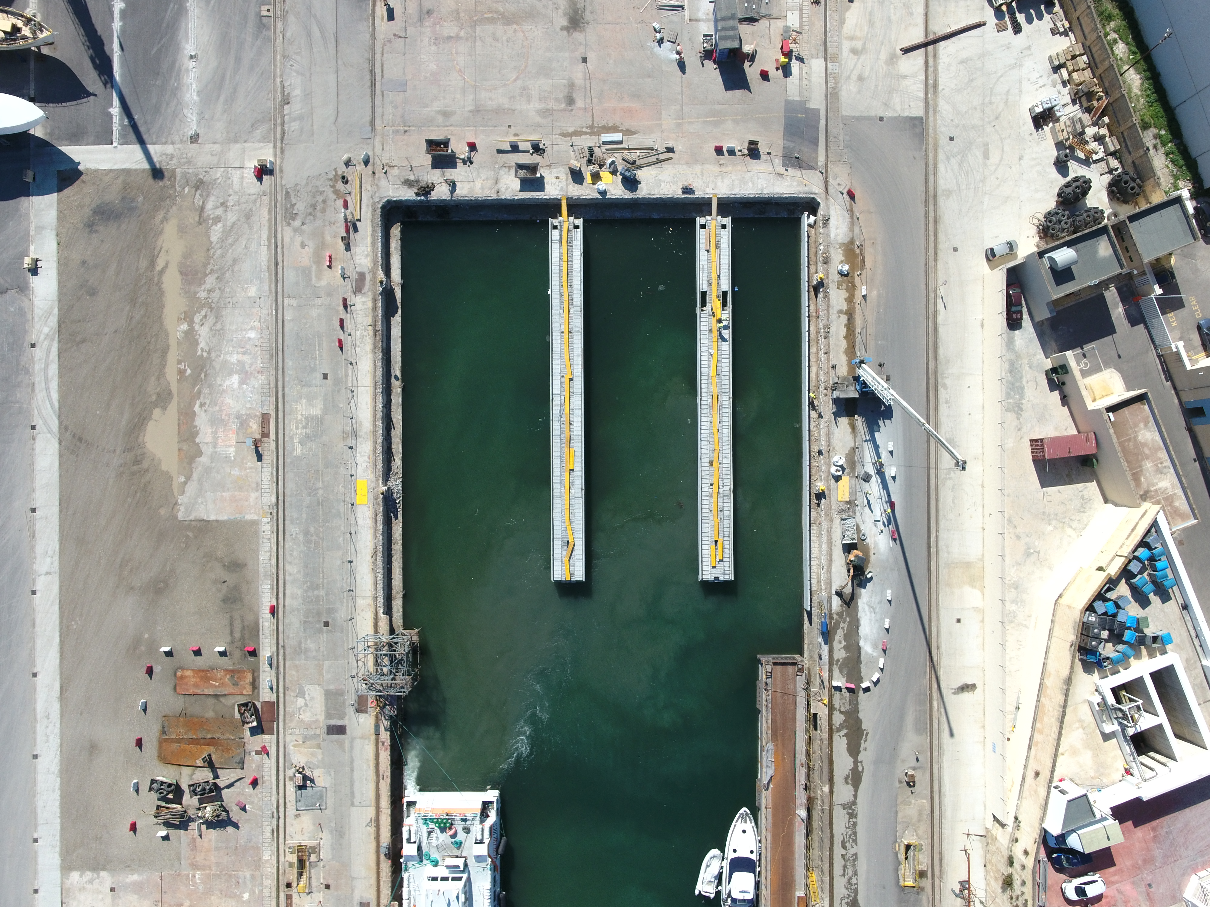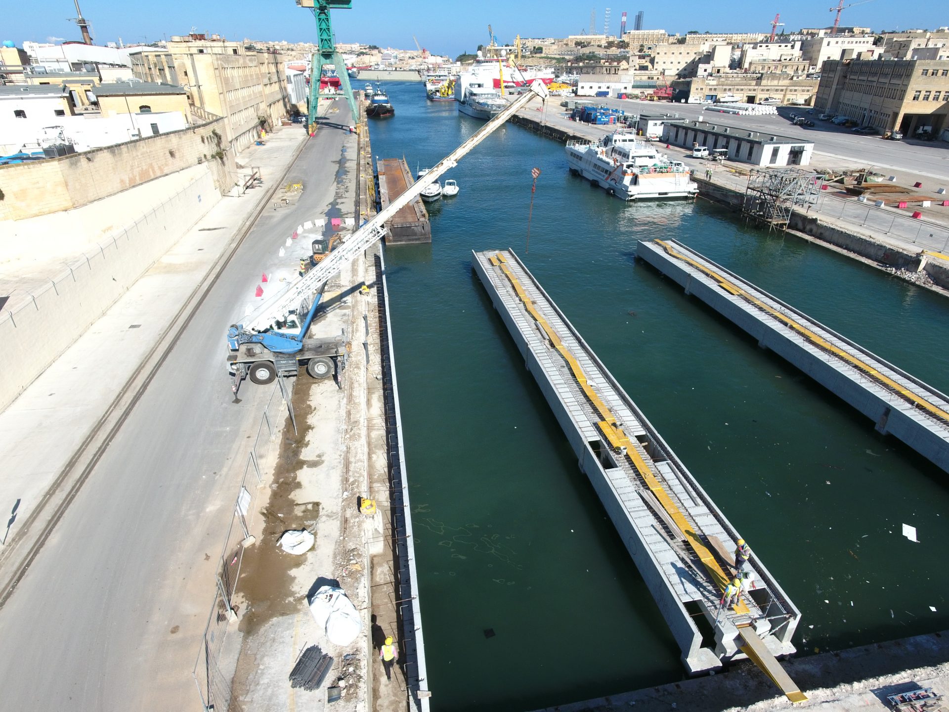 Forward Structures were responsible for the project management of the construction of two jetties within the old Marsa Shipbuilding dock, to host a 300-ton and a 700-ton travel lift at the Mediterranean Maritime Hub, Marsa.